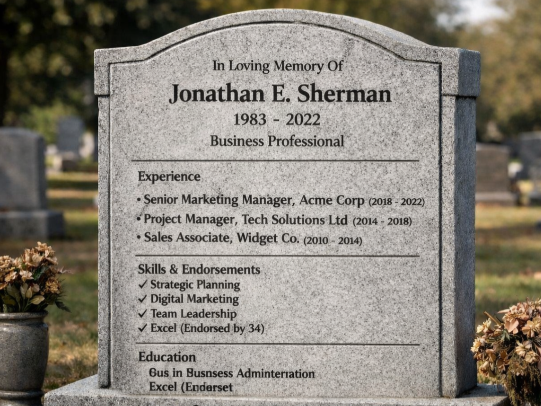 ‘These are quite odd,’ quipped Kolya. ‘I don’t think I’ve ever read “excellent team builder and leader” on a grave stone before.’